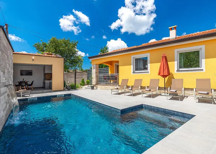 Three-Bedroom Holiday Home In Porec提供住宿,设有私人游泳池和设施齐全的厨房。 这套住宅设有1间卧室和1间浴室。